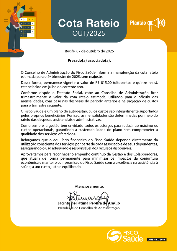 Manutenção da cota rateio no 4º trimestre de 2025.