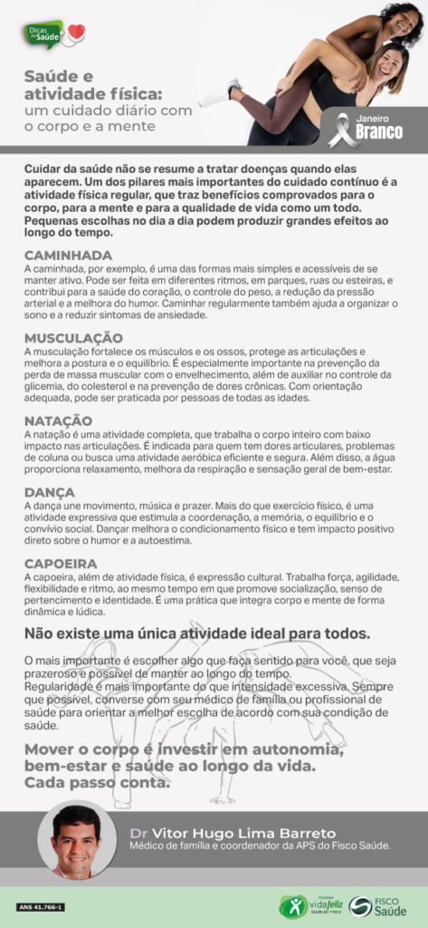 Saúde e atividade física: um cuidado diário com o corpo e a mente.